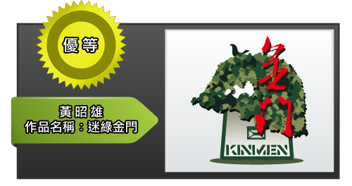 而經過五位評審長時間討論及四次評審結果:特優│陳建中,作品名稱為「金門起飛」:構想是以金門將成為一隻蛻變翩翩起舞的蝴蝶,邁向世界舞台,而獲得最高得分。優等│何幸枝,作品名稱為「迷采金門」是以縣鳥戴勝為主,色彩活潑有意涵。優等│黃昭雄,作品名稱為「迷綠金門」是以金門地圖編織成軍事碉堡,頗具創意及質感。