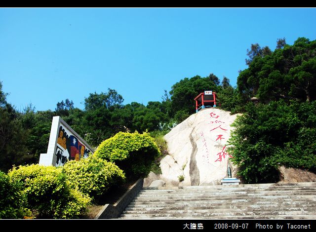 小金門轄區的大膽島上著名的「三民主義統一中國」標語牆,與廈門對岸的「一國兩制統一中國」標語牆,遙遙相望,兩地各自表述的宣傳標語,也成了觀光賣點之一,烈嶼鄉長洪成發認為一個鋼筋水泥混凝土大招牌,就吸引大陸成千上萬觀光客注目的眼光,如果開放烈嶼一日遊的行程,一定會是廈門旅遊操作的熱門行程,肯定能真正為烈嶼帶來觀光人潮和新商機。