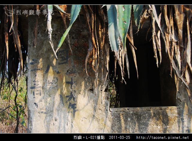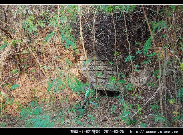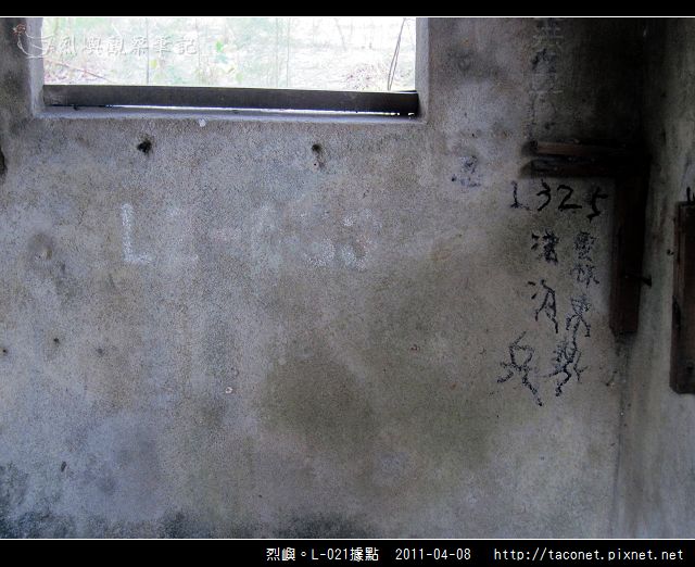 L-021據點位於陵水湖中,靠近上林處。此地已劃入國家公園範圍內,雖然周遭經過多次的整理,但整座據點保存尚完整。