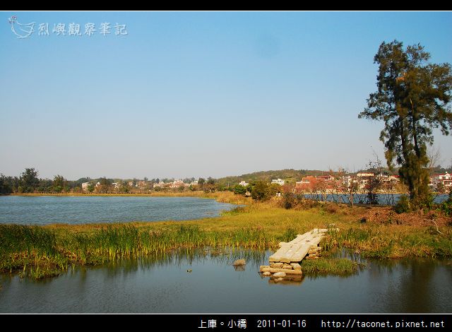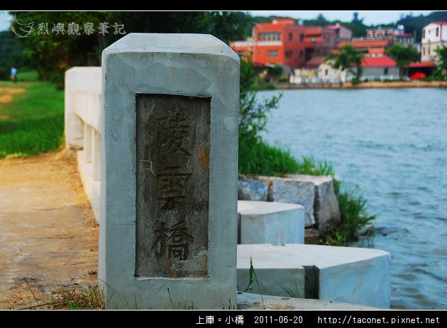 上庫「小橋」位在陵水湖靠近西山處,此處原為上庫鹽埕邊沿的鹽水路,「小橋」溝通西方、上林的村民來往青岐的交通。除此橋外,在現在楊厝前附近還有座「大橋」,現已不可見,傳聞國軍進駐後被拆去建碉堡。早期這一帶是鹽埕,隨著海水的漲落,小潮時走「小橋」,大潮時「小橋」被掩沒改走「大橋」。