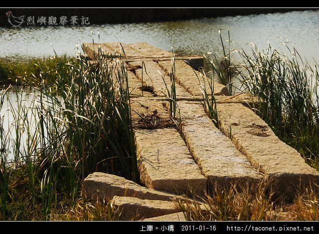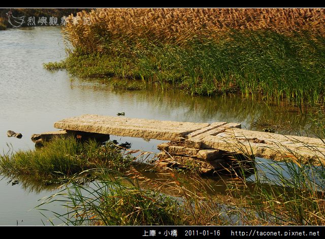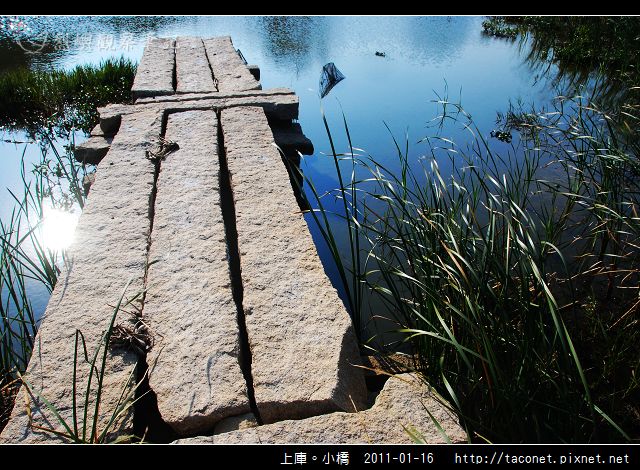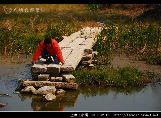 小橋應是建於明朝年間,是一座「三直二橫」形式的石板橋,橫板為二片背對ㄇ字型,有卡住直板的作用。