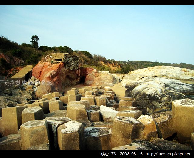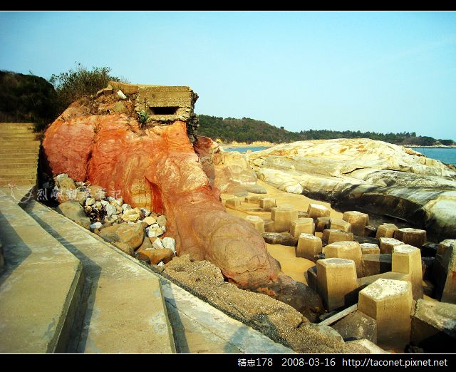 這是民國97年3月拍的精忠堡,可見碉堡前方風化的岩石已經崩落。