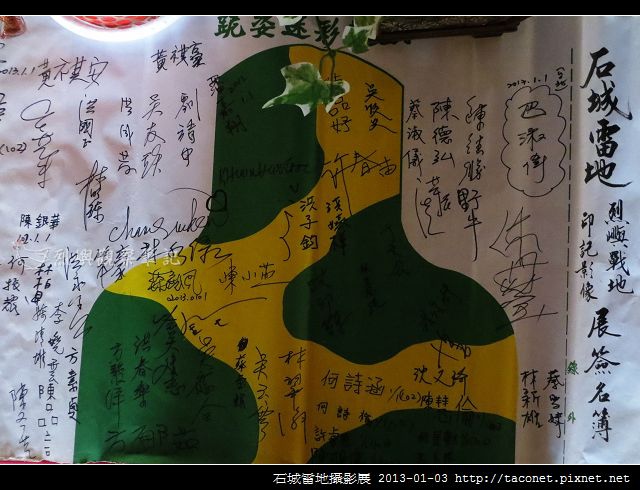 2013-01-02 金門日報社記者 許加泰/烈嶼 報導 曾扮演戰地最前線角色的烈嶼,無論是地面上的軍事建設或是地下的城堡,都遺留許多珍貴的軍事遺跡,退休教師洪清漳結合同好走遍島嶼,用鏡頭紀錄下這些軍民流血流汗所打造的軍事建設,以「石城雷地」-烈嶼戰地印記影像展為主題,昨日起在烈嶼文化館展出遺跡影像,副縣長吳友欽說,「戰地文化」是烈嶼鄉珍貴的觀光資產。烈嶼鄉長洪成發也表示,鄉公所積極結合縣政府一同來保留軍民共同記憶的軍事遺跡,努力將戰爭歷史轉化為軍事觀光資源。