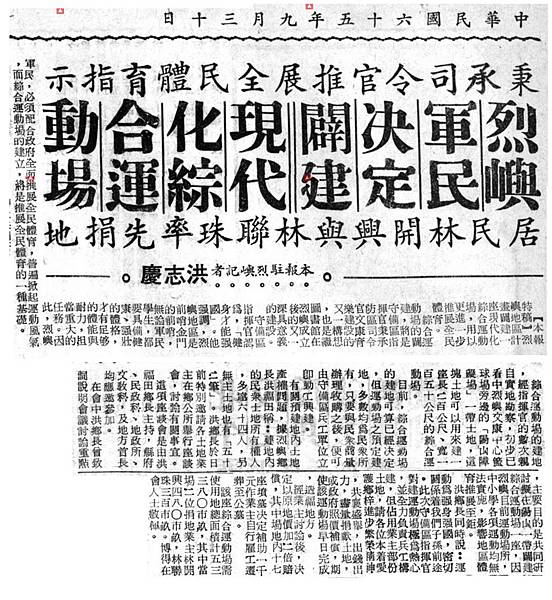 「烈嶼鄉東林綜合運動場土地說明會」於昨日下午二時起,假烈嶼鄉公所二樓會議室舉行,會議由鄉長洪成發主持,地政局長林德恭、縣府教育處副處長陳金文、縣府地政局科長、建設處科長、軍方人員、土地所有人等與會。