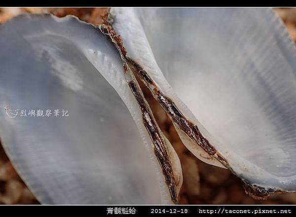 殼內面白色,絞齒盤薄而筆直,有許多細齒。
