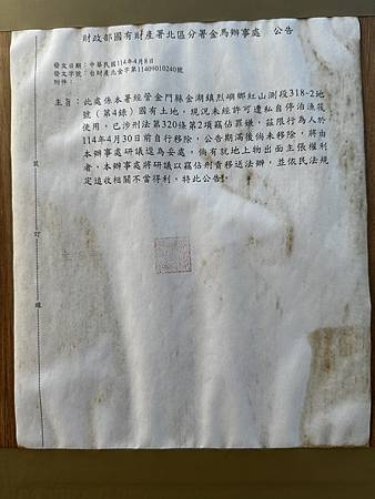 乍看之下,這是一則針對非法占用國有地的例行公告,但對烈嶼鄉當地居民而言,這卻是一道封鎖了世代出海通道、徹底切斷生活與歷史記憶的公文。